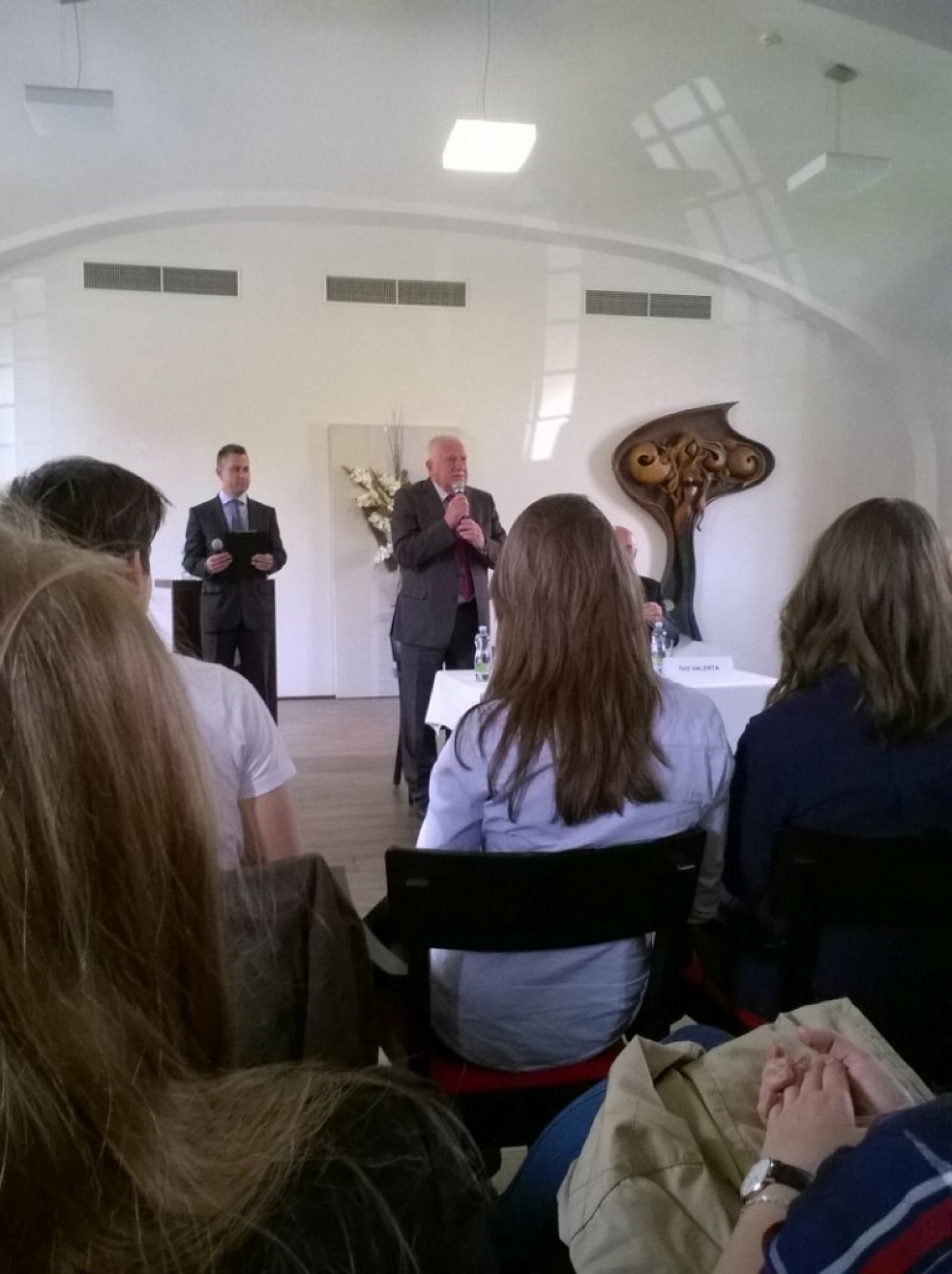 Setkání žáků Obchodní akademie s Václavem Klausem
