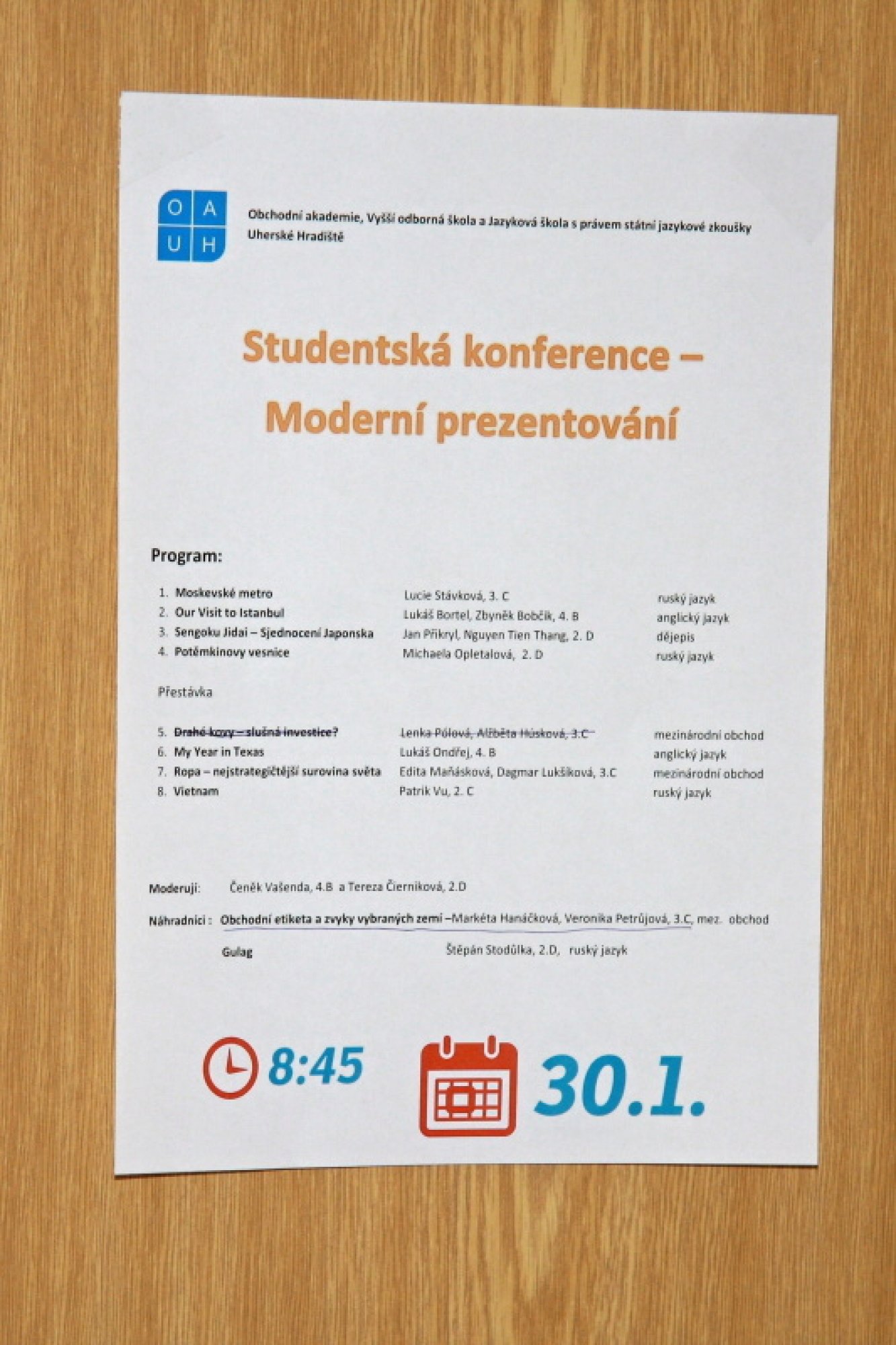Tento web používá soubory cookie a z hlediska zákona se jedná o osobní údaje. Správcem těchto osobních údajů je Obchodní akademie, Vyšší odborná škola a Jazyková škola s právem státní jazykové zkoušky Uherské Hradiště, Nádražní 22, 686 01 Uherské Hradiště, IČ:60371731.